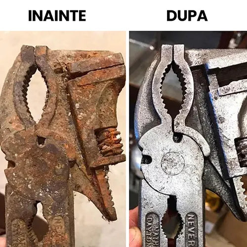 Nu doar curăță, ci și creează un strat protector care încetinește formarea ruginii noi. Ideal pentru întreținere pe termen lung.
